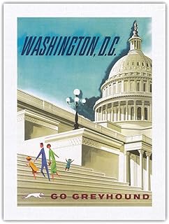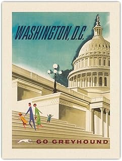 Washington D.C. États-Unis - Etats-Unis Capitol Building - Aller Greyhound, Prenez Les Autobus Greyhound - Affiche Voyage c.1950s - Tissu de Soie Impression d'art 61x81cm