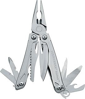 Leatherman Sidekick - Pince multifonctions 14 outils avec pinces actionnées par ressort, 2 lames de couteaux et bien plus encore ; fabriqué aux Etats-Unis, couleur gris acier, étui en nylon inclus