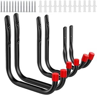 BUZIFU 6 Pcs Crochets pour Garage, Crochets Utilitaires de Rangement de Garage Robuste pour Échelles et Outils Support Mural de Organisateur en U avec des Vis pour Suspendre des Outils de Jardin