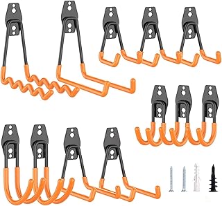 Synlyn 8 pièces Crochets muraux utilitaires Crochets doubles Crochets multi-tailles Crochets d'équipement robuste Porte-outils mural en fer Crochets de garage pour vélos, chaises pliantes -Orange