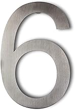 Numéro de maison moderne brossé - 102 mm de hauteur, fabriqué en acier inoxydable 304 massif, aspect flottant et facile à installer (numéro 6 Six)