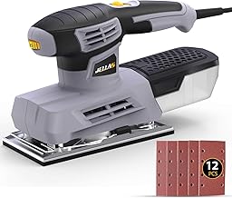 JELLAS Ponceuse Vibrante 1/3 Feuille, Ponceuse à 6 Vitesses Variables 12000RPM avec Boîte de Collecte de Poussière, Base de Ponçage 90 * 187mm, 12 Feuilles de Ponçage, Mécanisme de Serrage du Papier