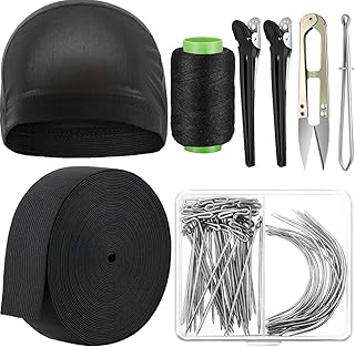 DIY Outil de Perruque Kit de Fabrication de Perruque pour Débutant, Chapeau de Perruque Bande de Perruque Noire Bobine de Corde Élastique 70 Aiguilles à Tisser T Épingles 2 Pinces à Cheveux Fil Noir
