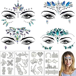 YWQ 4 Pièces Strass Autocollant Visage,Tatouage Temporaire Strass Visage Autocollants,Cristal Femmes Visage Bijoux,Visage Strass Autocollant Sirène pour La FêTe du Festival