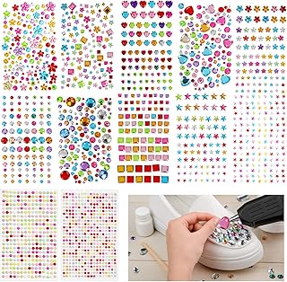 Strass Autocollant pour Enfants Filles, Pierres Précieuses Adhésif Cristal de Strass Gem Autocollants à Paillettes, Acrylique Coloré Strass pour l' Artisanat Décoration (20 Feuilles)
