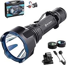 Olight Warrior X Turbo Lampe Torche Paquet Tactique 1100 Lumens /1000 Mètres Puissant Lampe Torche Rechargeable Militaire, avec Batterie 21700 + Commutateur à distance + Monture + Filtre rouge et Vert