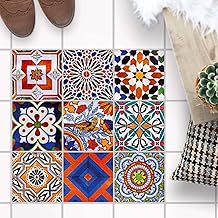 [ Adhésifs pour Carreaux de Sol ] - Carrelage Autocollant pour Salle de Bain et Carreaux Cuisine I Film adhésif - Stickers carrelage I Design: Tuiles Portugaises - 15x15 cm - 09 pièces