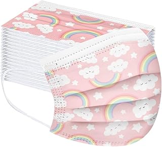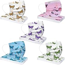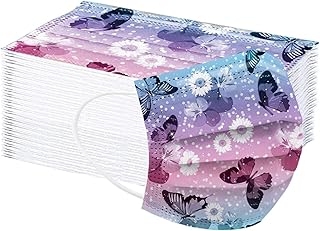 DWQuee 50 Pièces Visage Protection_Masque Tissu Enfant Mignonne Non-tissé 3 Plis éTanche à La PoussièRe Respirants Protection Faciale Jetable Impression de Papillon Bandeaux pour Fille Garçon