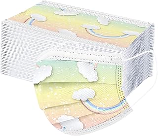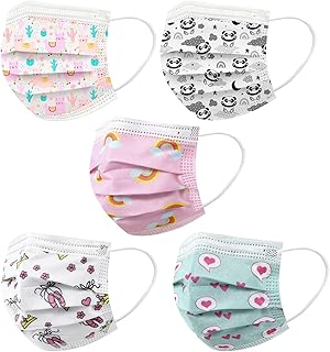 50 Pièces Masque Tissu Enfant Mignonne Non-tissé 3 Plis Protection Faciale Jetable Impression Bandeaux pour Fille Garçon (Multicolore 19)